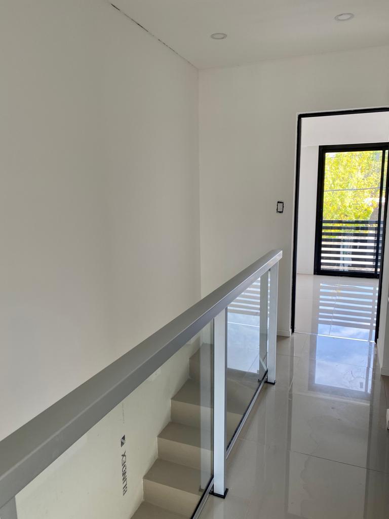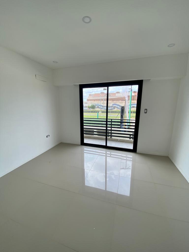Dormitorio en frente con puertas balcón y baranda, el dormitorio trasero cuenta con un balcón de 80cm2.