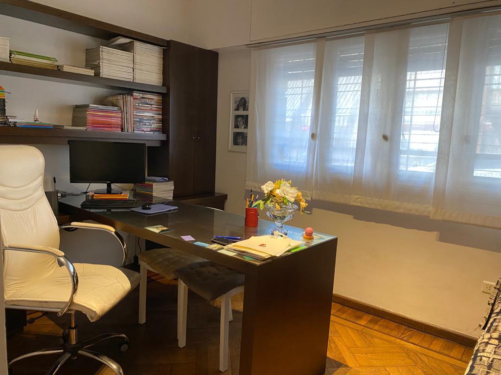 Escritorio con ventanas a la calle, pisos de parquet y con muebles a medida.