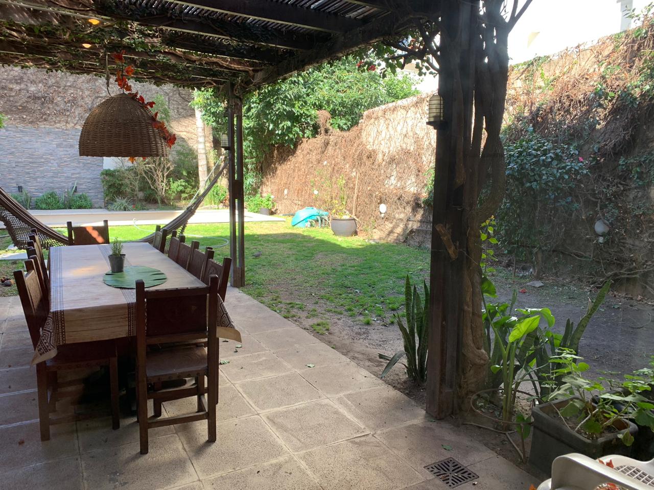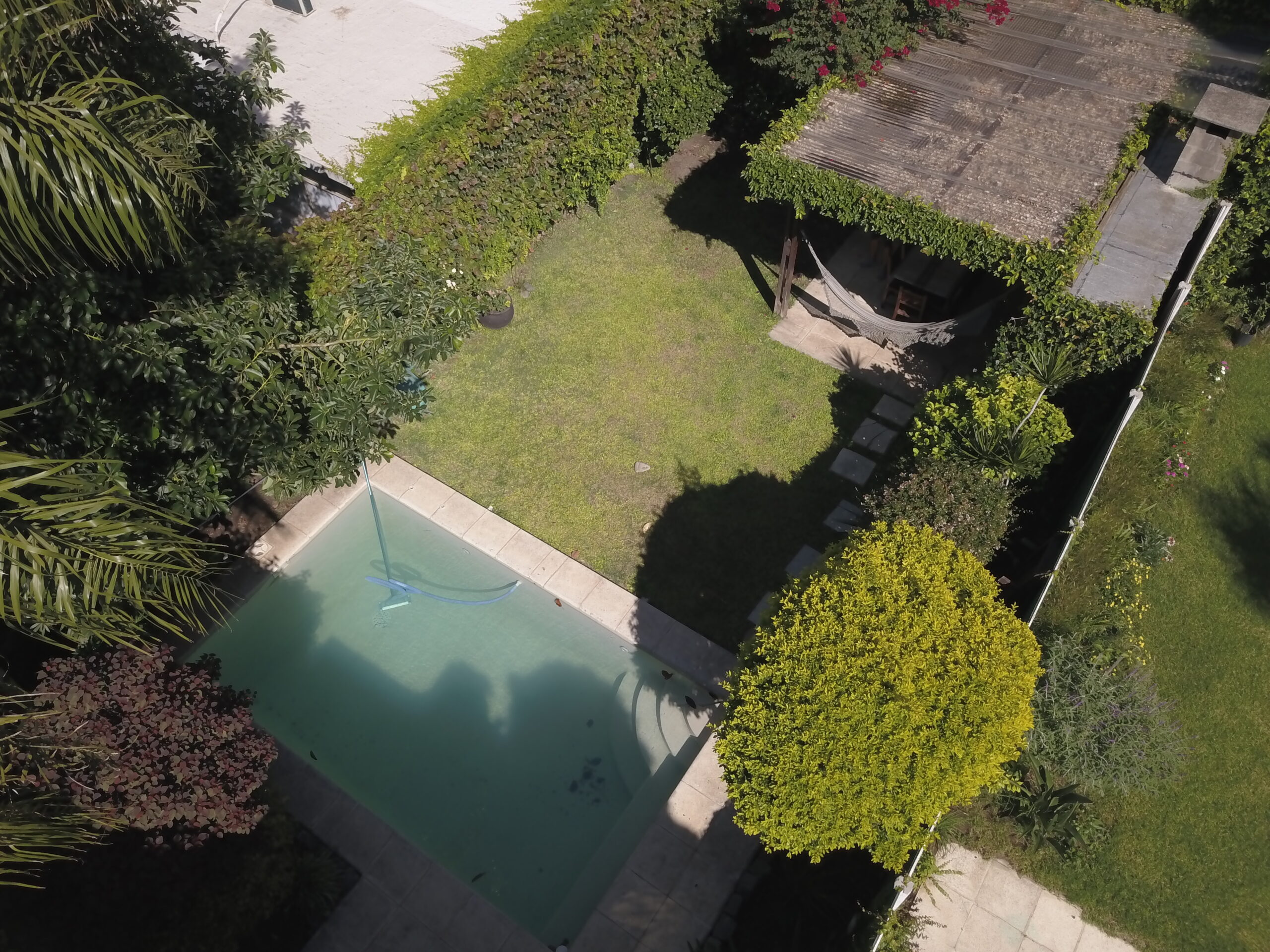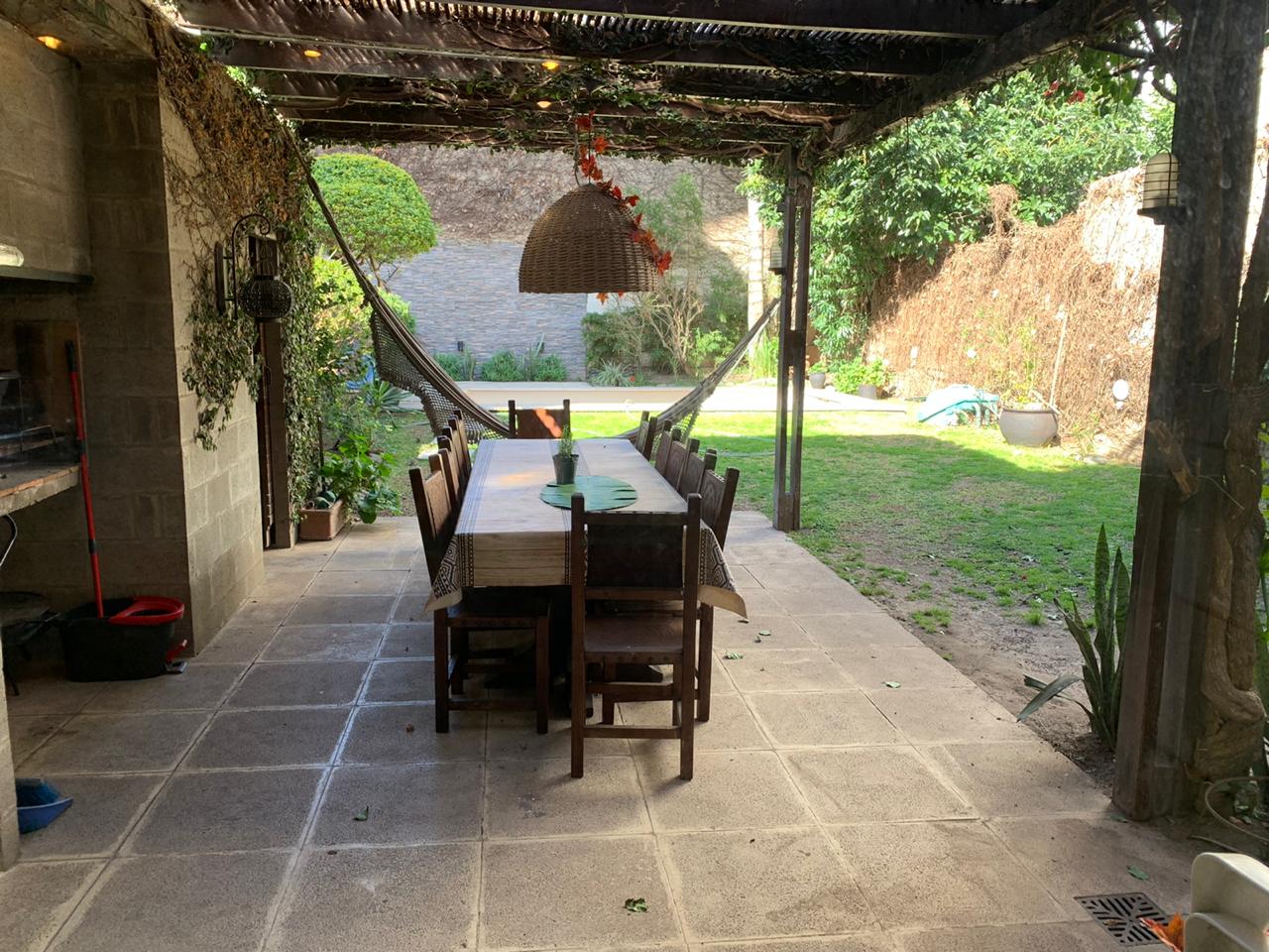 Gran jardín parquizado. Living de exterior techado. Comedor de exterior techado con parrillero. Lavadero, tender escondido. Baño con ducha. Pileta de 3 m x 5 m de material con perforación y deck con losetas atérmica.