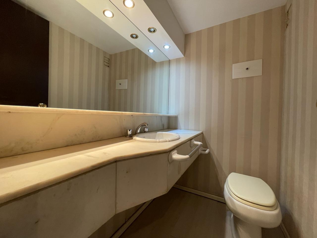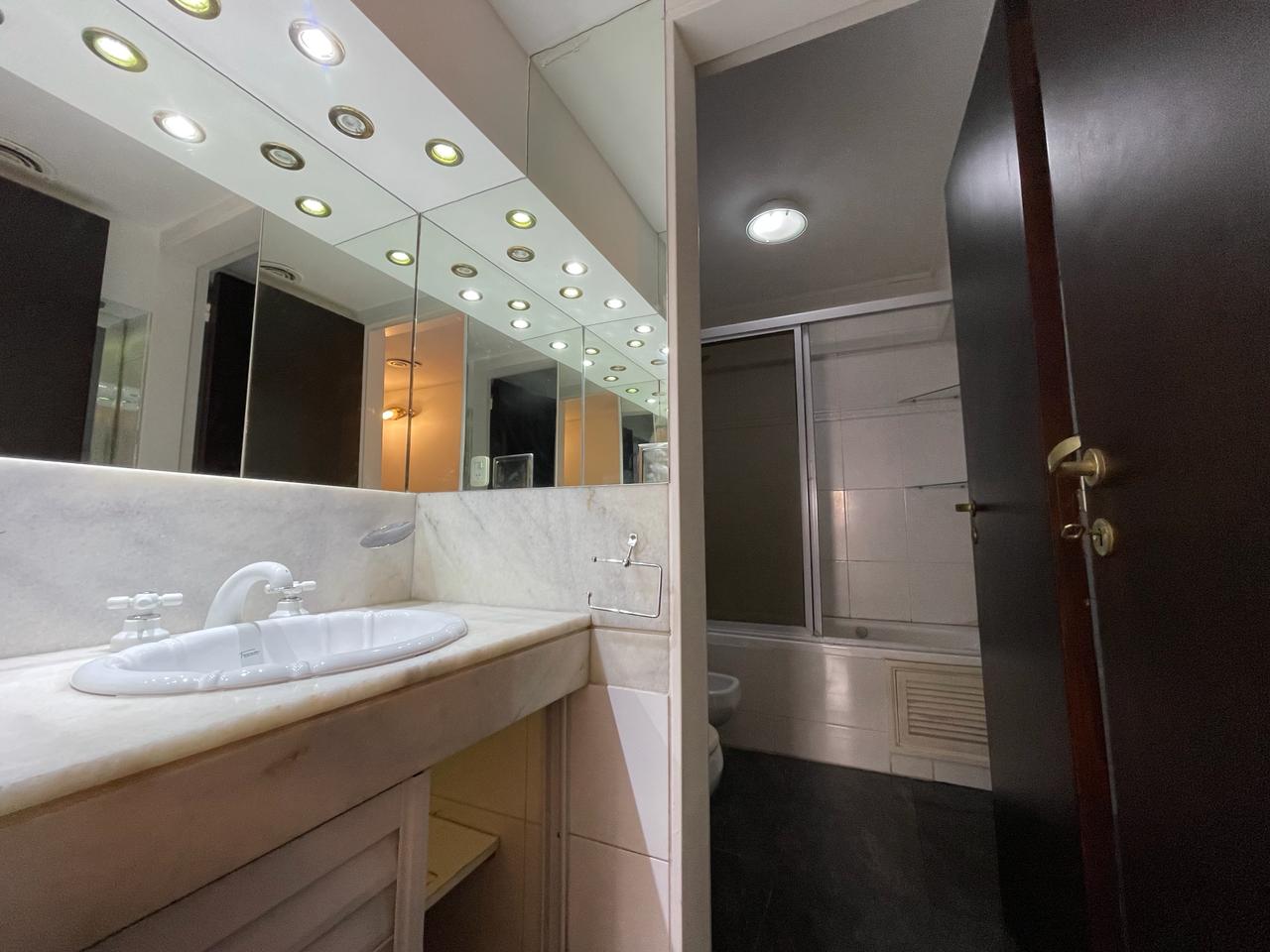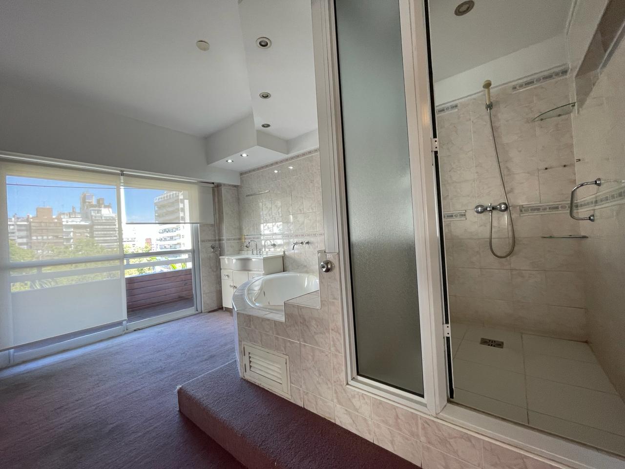 Amplio dormitorio principal con salida al balcón y en suite, con jacuzzi y 2 duchas, placard y 2 lavatorios.
