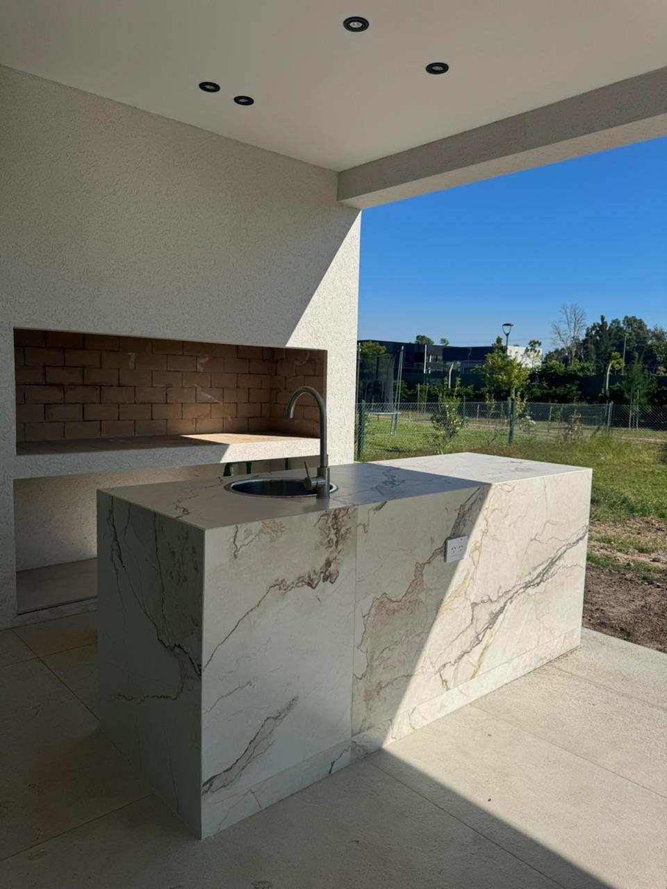 Terminaciones premium en toda la propiedad: pisos de porcelanato de gran formato, exteriores en hormigón y adoquines PAVINTEC. Cocina, baños y lavadero con mesadas de Silestone y granito, bachas Johnson y griferías de primeras marcas. Aberturas de aluminio con DVH, puertas de calidad y mobiliario Reno línea Premium. Equipamiento completo con horno, anafe, campana y calefacción por losa radiante con caldera dual. Instalación eléctrica sectorizada, iluminación LED y preinstalación para A/A. Excelente calidad constructiva con revestimientos modernos y detalles de categoría en fachada e interiores.