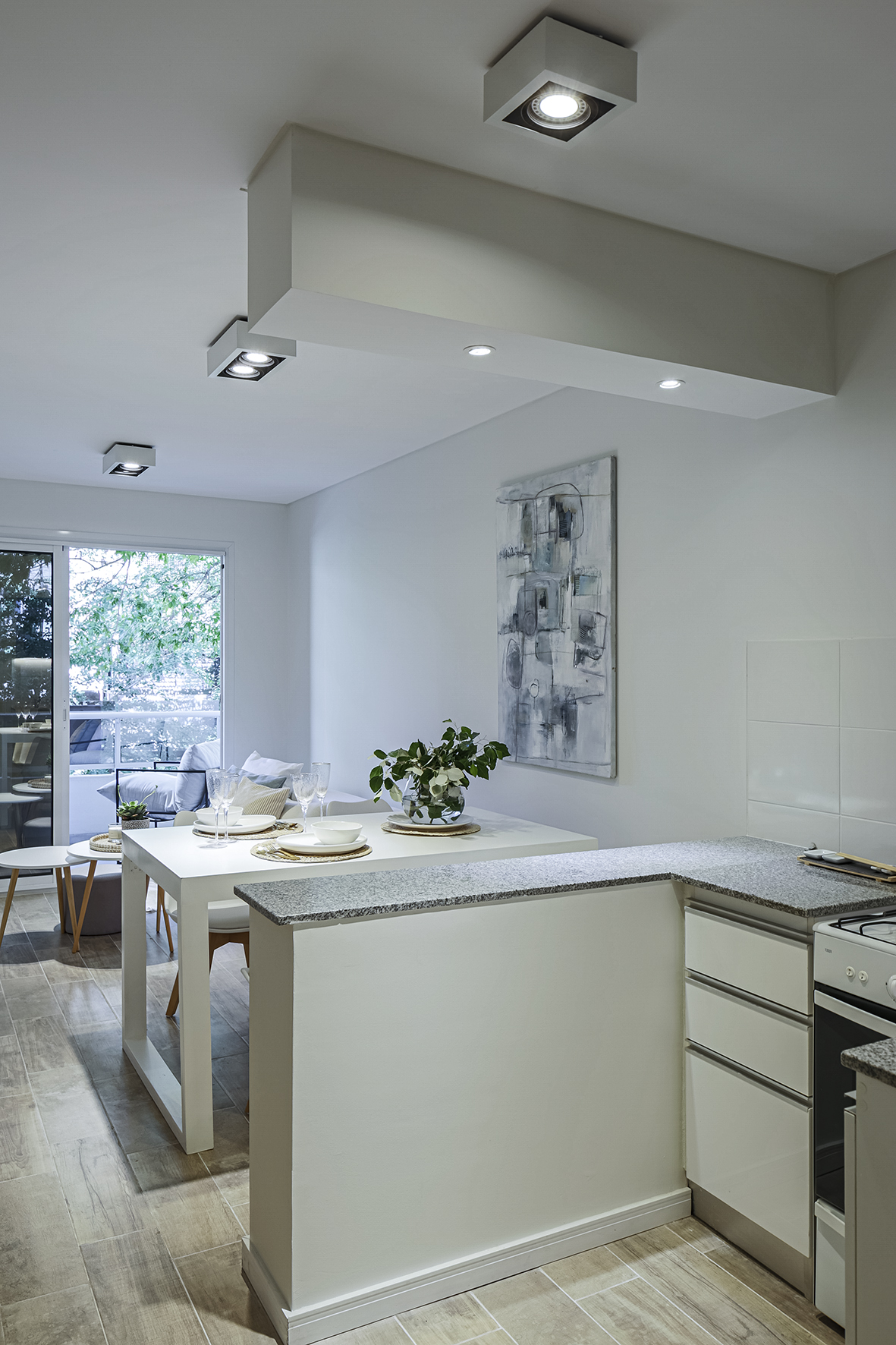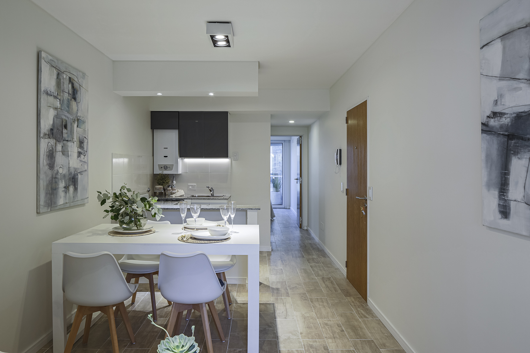 Amenities: quincho con parrillero y solarium, terraza con espacio fitness, espacio de jardín en planta baja, bicicleteros