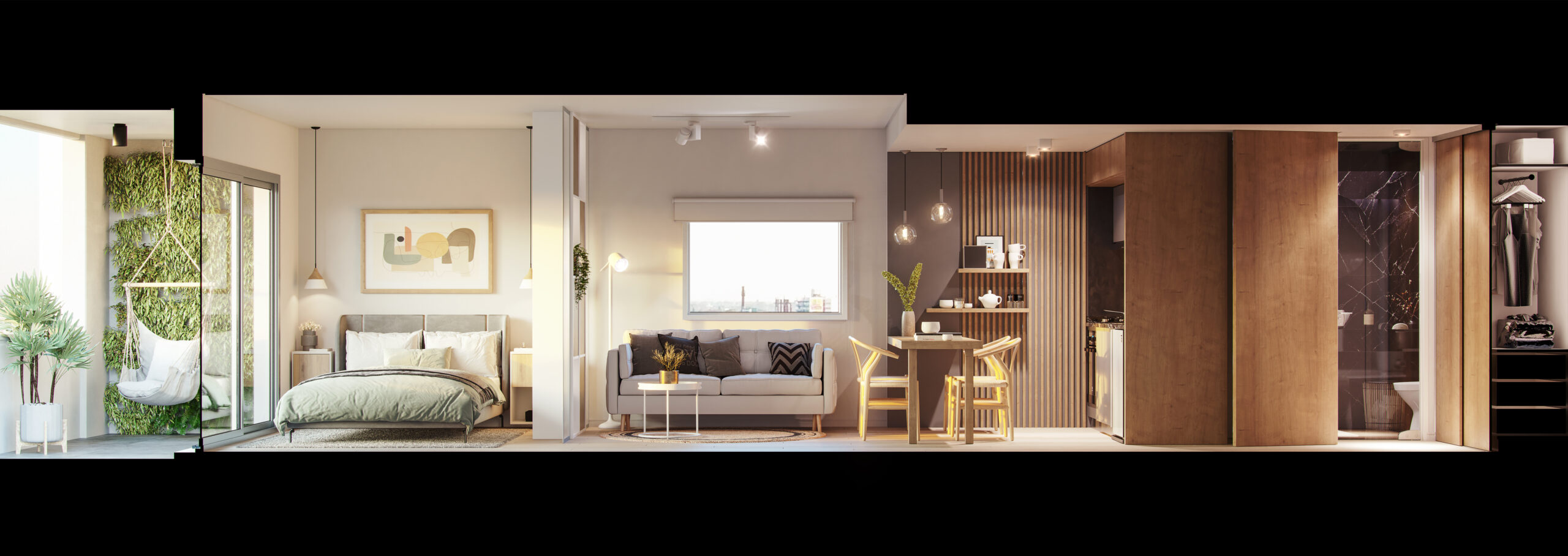 Departamento 2 dormitorios Parrillero 06-01 Frente con balcón Sup. Cubierta: 43M2 Balcón: 6M2 Sup. Total: 49M2 Valor: U$S 83.000