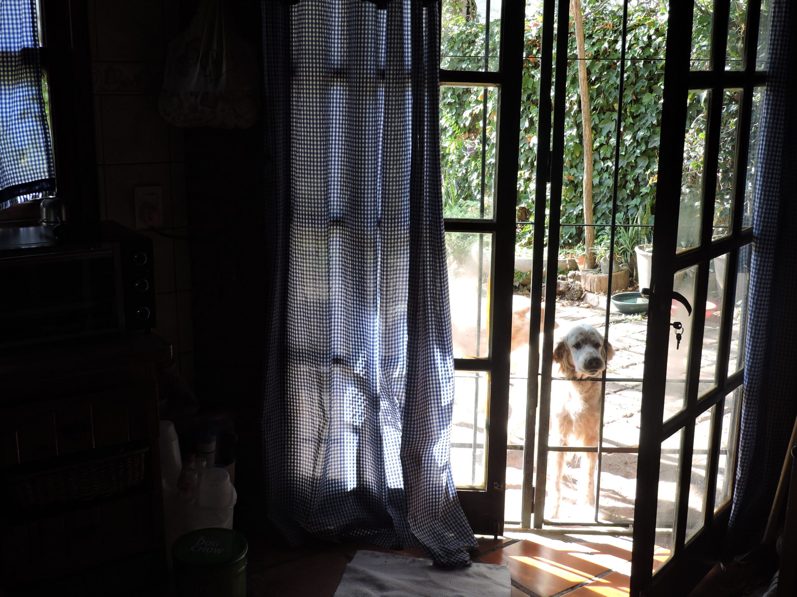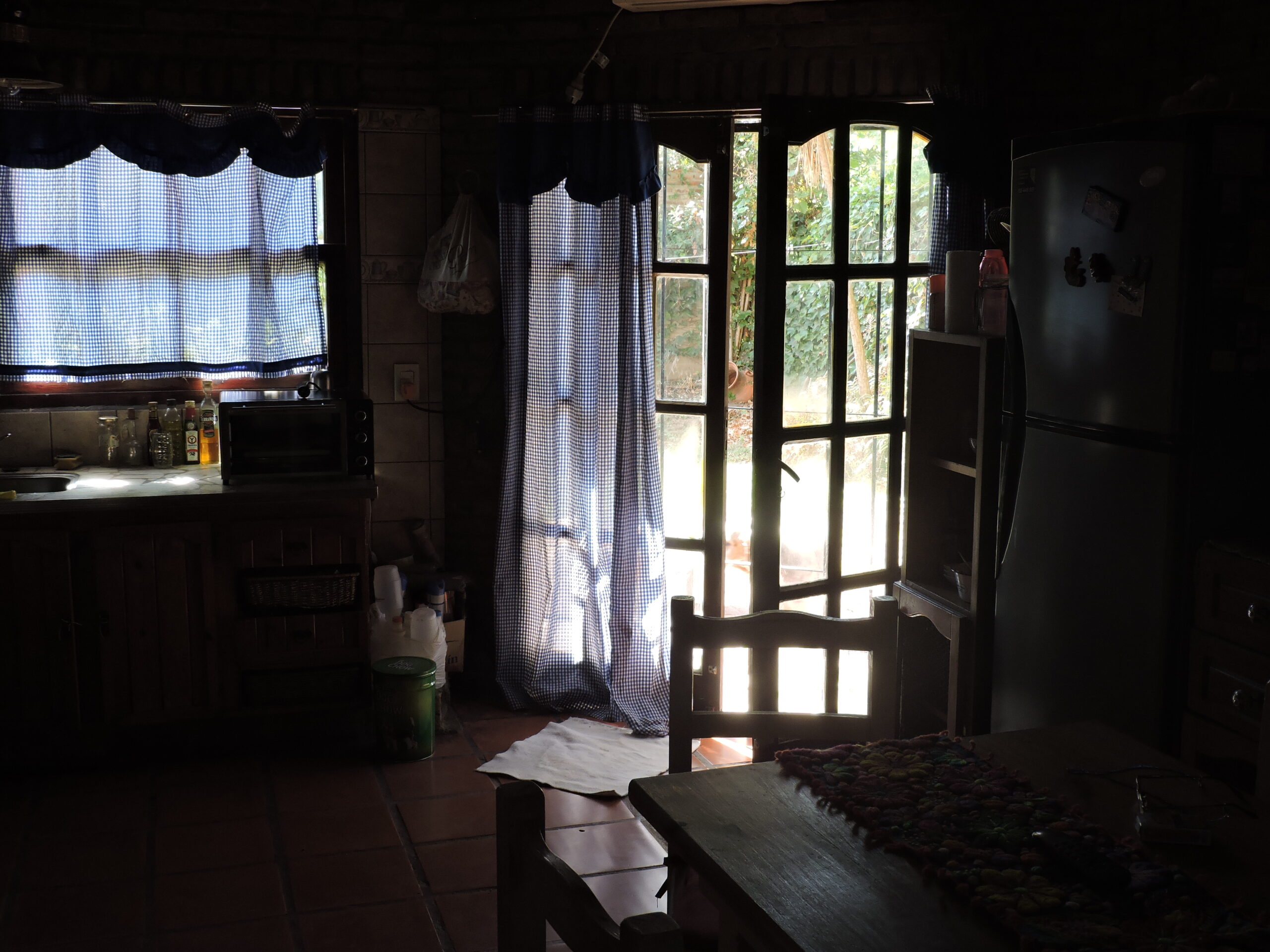 Cocina comedor con bajomesada y puerta balcón con salida al jardín.