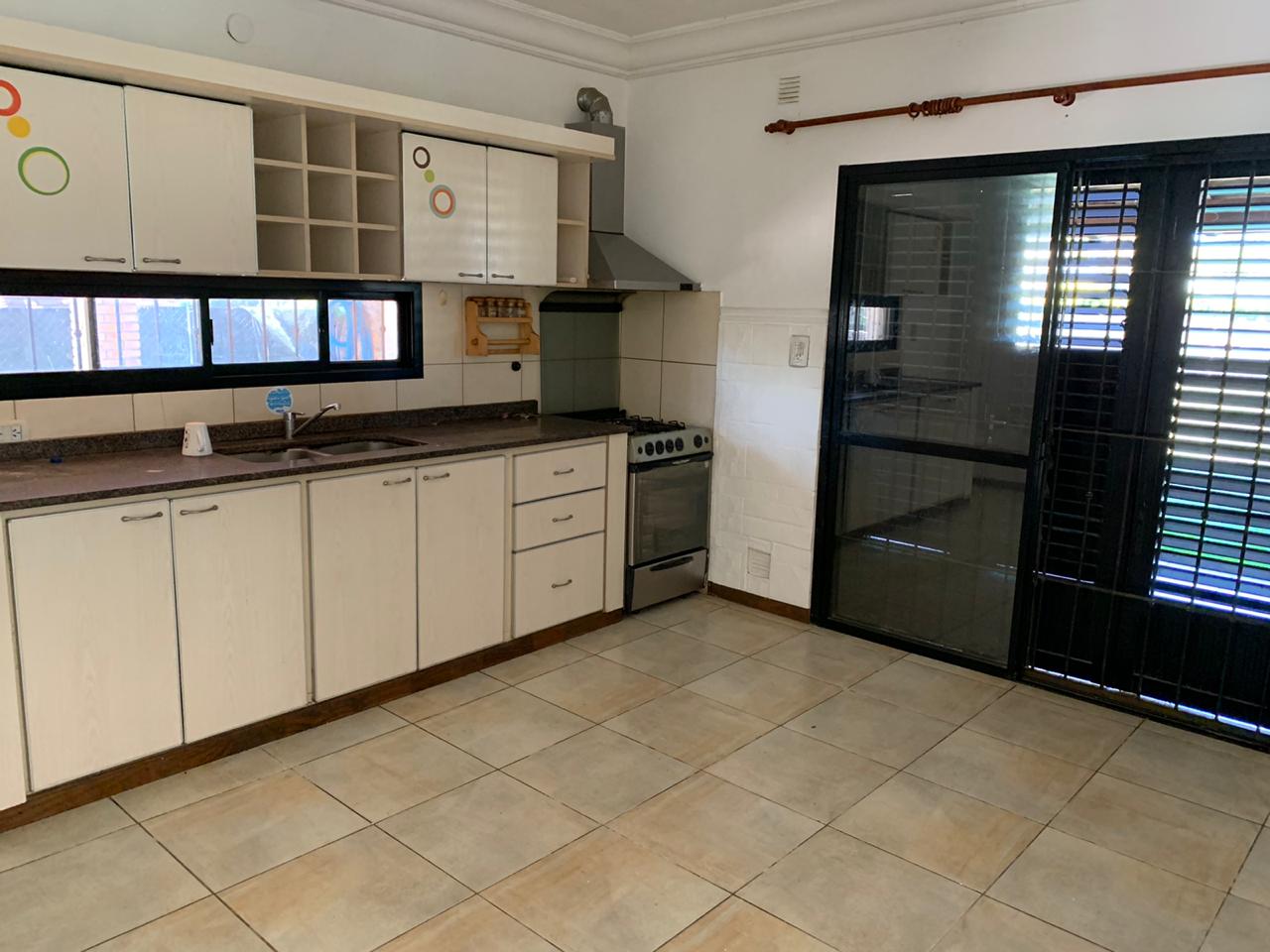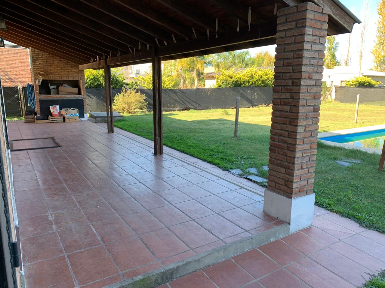 Jardín parquizado con piscina, cochera para dos vehículos. Parrillero y galería.