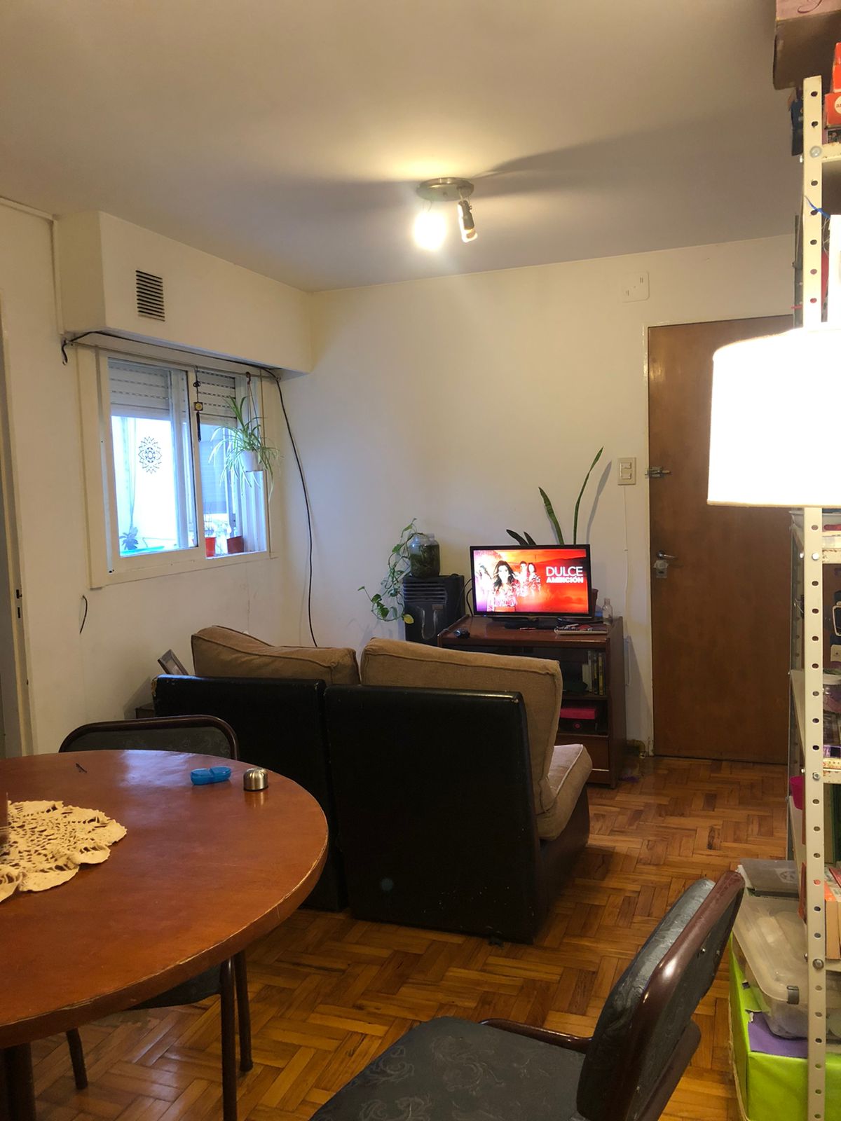 Living comedor con piso de madera, con calefacción individual, ventanas al ire-luz.